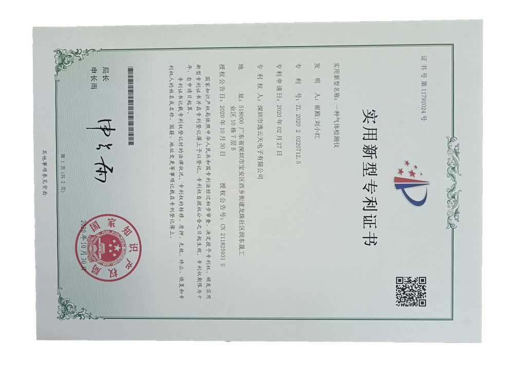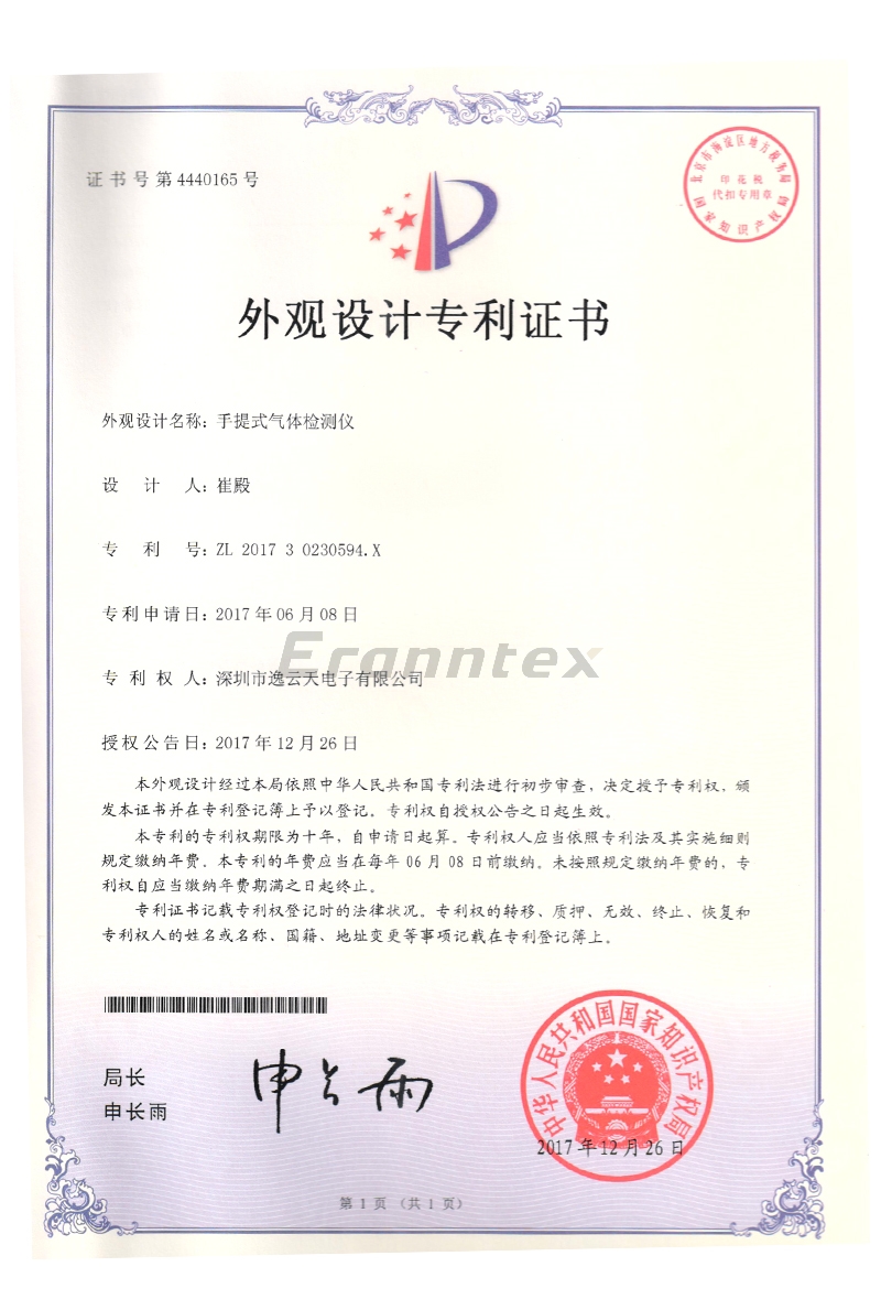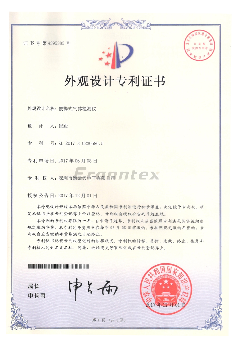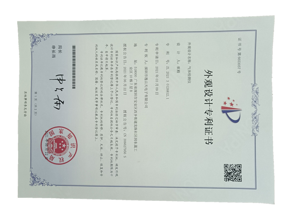 手提式PTM600气体樱桃视频黄色版外观设计专利证书
