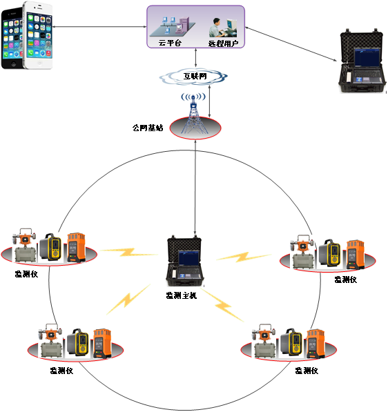实现实时在线监测设备检测数据,远程查看现场参数。减少工作管理人员在控制室与现场间来回跑动。在线监测分为本地监测和远程监测两种方式,本地监测位于现场附近;远程监测位于现场较远或跨区域异地位置。
